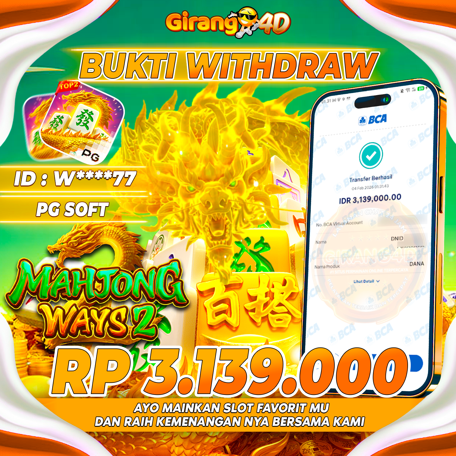 GIRANG4D Bukti Kemenangan SLOT MAHJONG WINS 2 Selamat Kepada Id : W****77 Atas Withdraw Rp. 3.139.000 Hari ini. Ditunggu Withdraw Selanjutnya dan ajak juga teman temannya bergabung di GIRANG4D GIRANG4D…