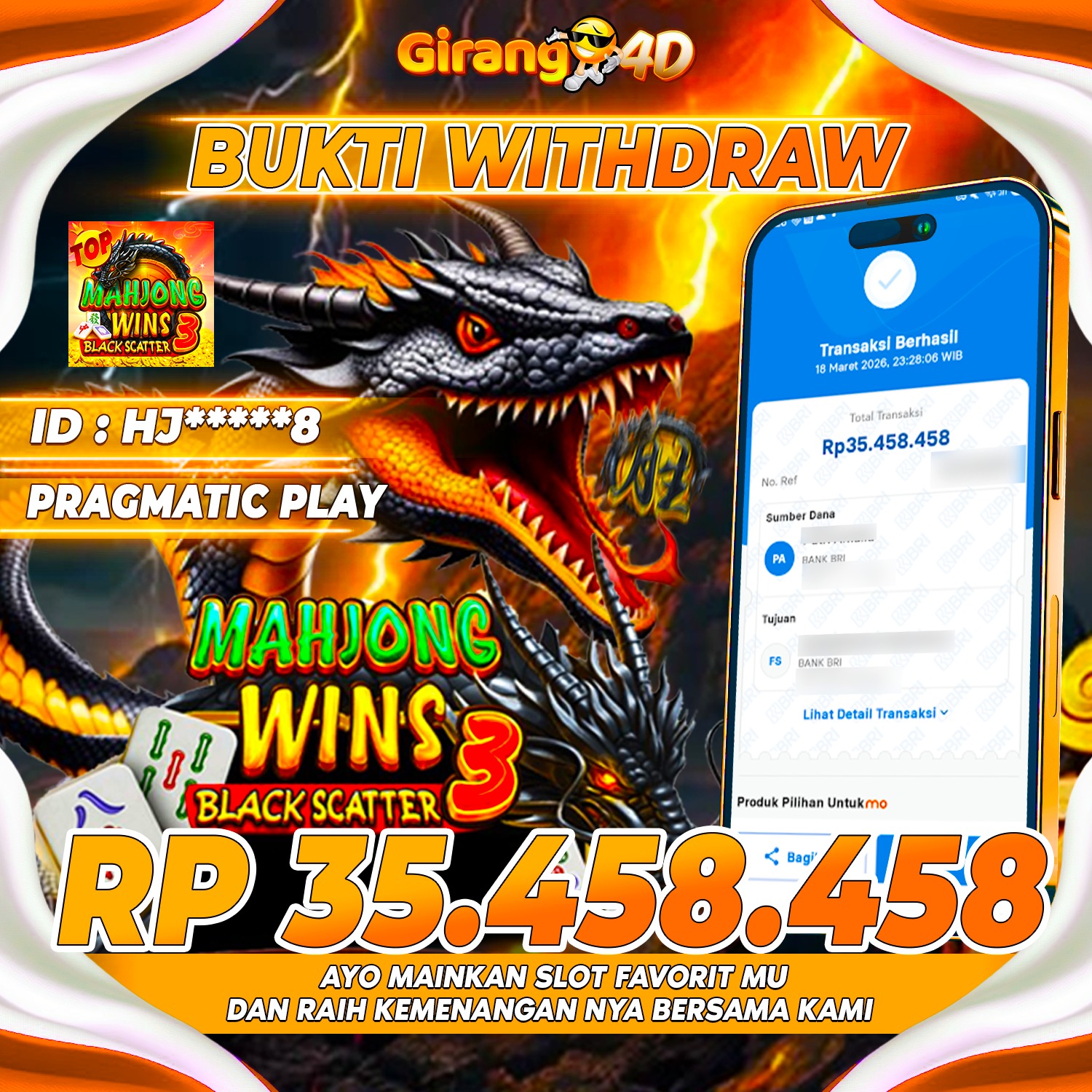 Selamat Kepada Id : HJ*****8 Atas Withdraw Rp. 35.458.458 Hari ini. Ditunggu Withdraw Selanjutnya dan ajak juga teman temannya bergabung di GIRANG4D
