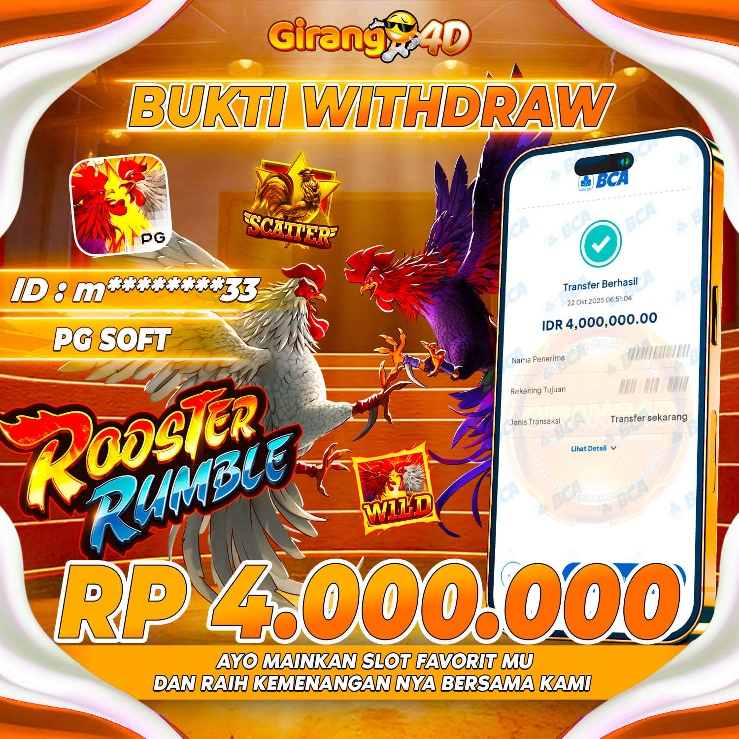 Selamat Kepada Id : M******33 Atas Withdraw Rp.4.000.000 Juta Hari ini. Ditunggu Withdraw Selanjutnya dan ajak juga teman temannya bergabung di GIRANG4D