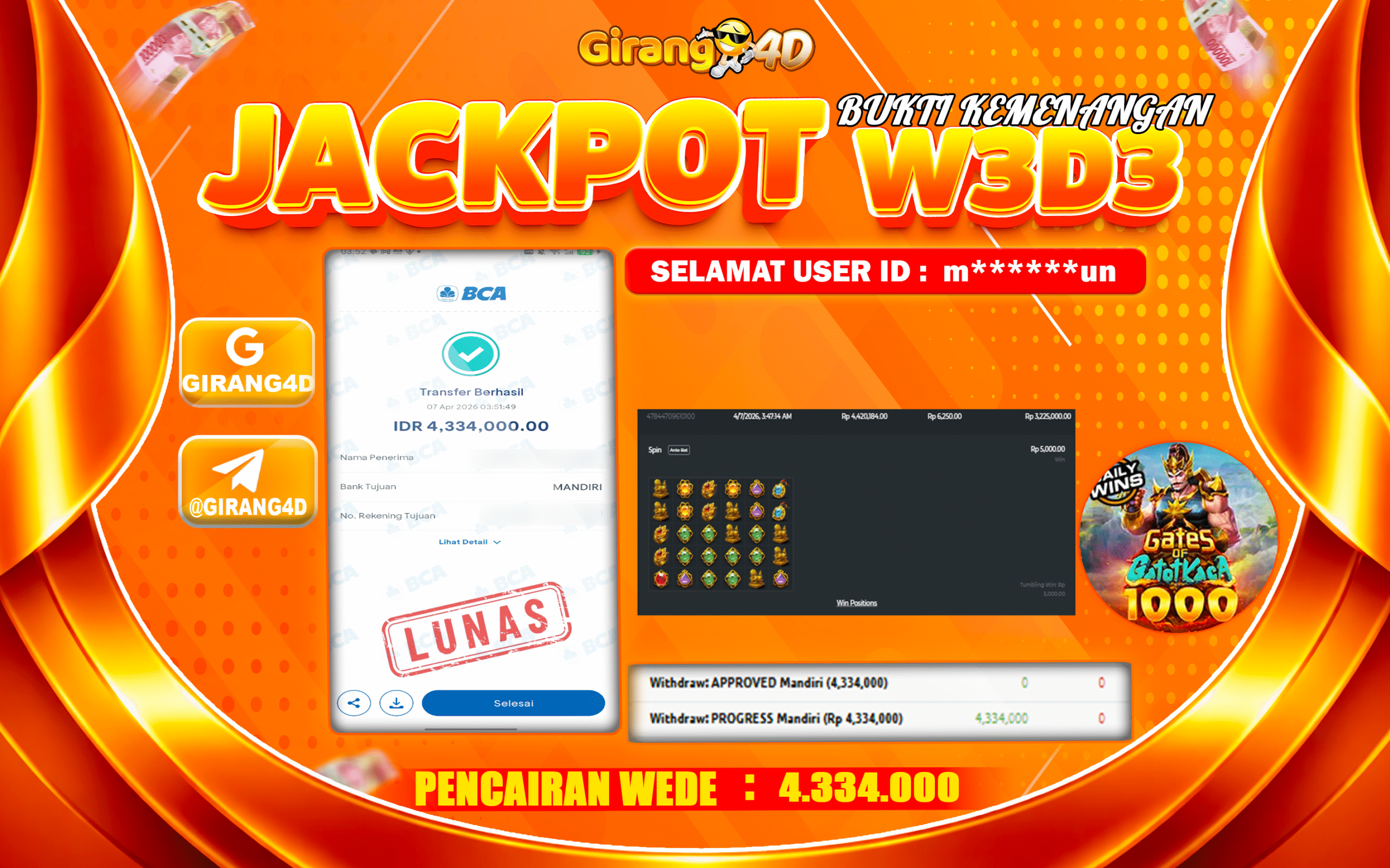 GIRANG4D Bukti Kemenangan SLOT GATES OF GATOT KACA 1000