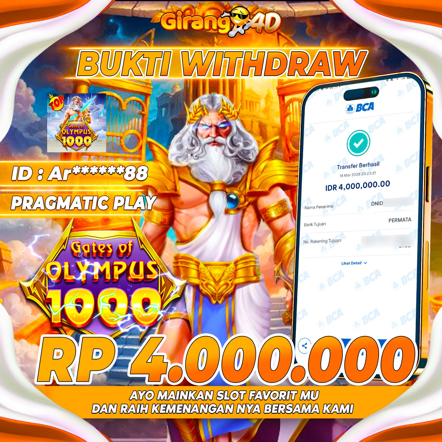Selamat Kepada Id : Ar******88 Atas Withdraw Rp. 4.000.000 Hari ini. Ditunggu Withdraw Selanjutnya dan ajak juga teman temannya bergabung di GIRANG4D