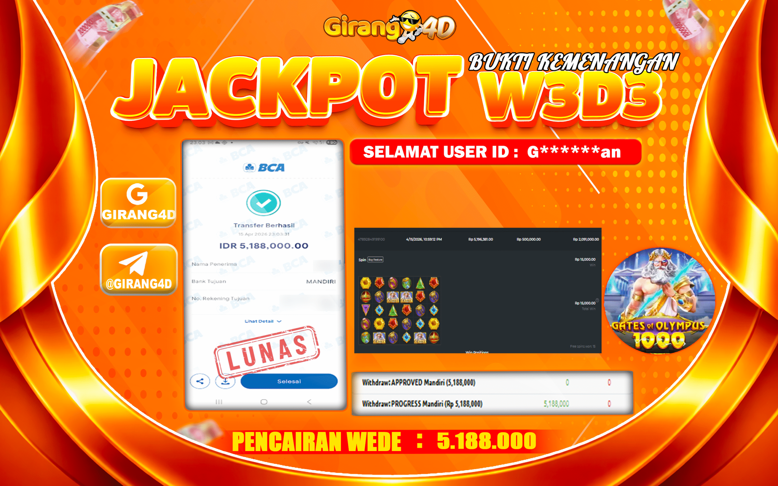 GIRANG4D Bukti Kemenangan SLOT GATES OF OLYMPUS 1000