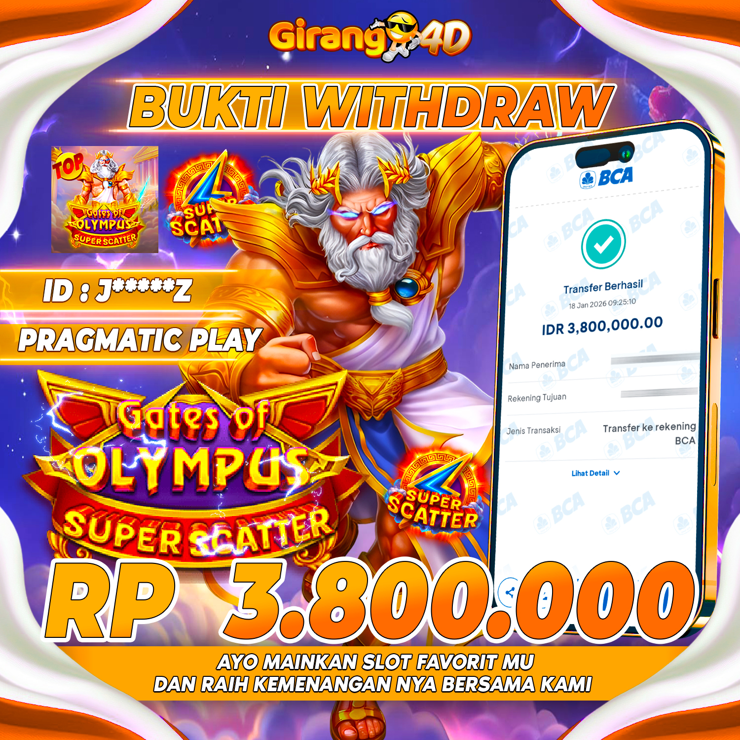 Selamat Kepada Id : J*****Z Atas Withdraw Rp. 3.800.000 Hari ini. Ditunggu Withdraw Selanjutnya dan ajak juga teman temannya bergabung di GIRANG4D