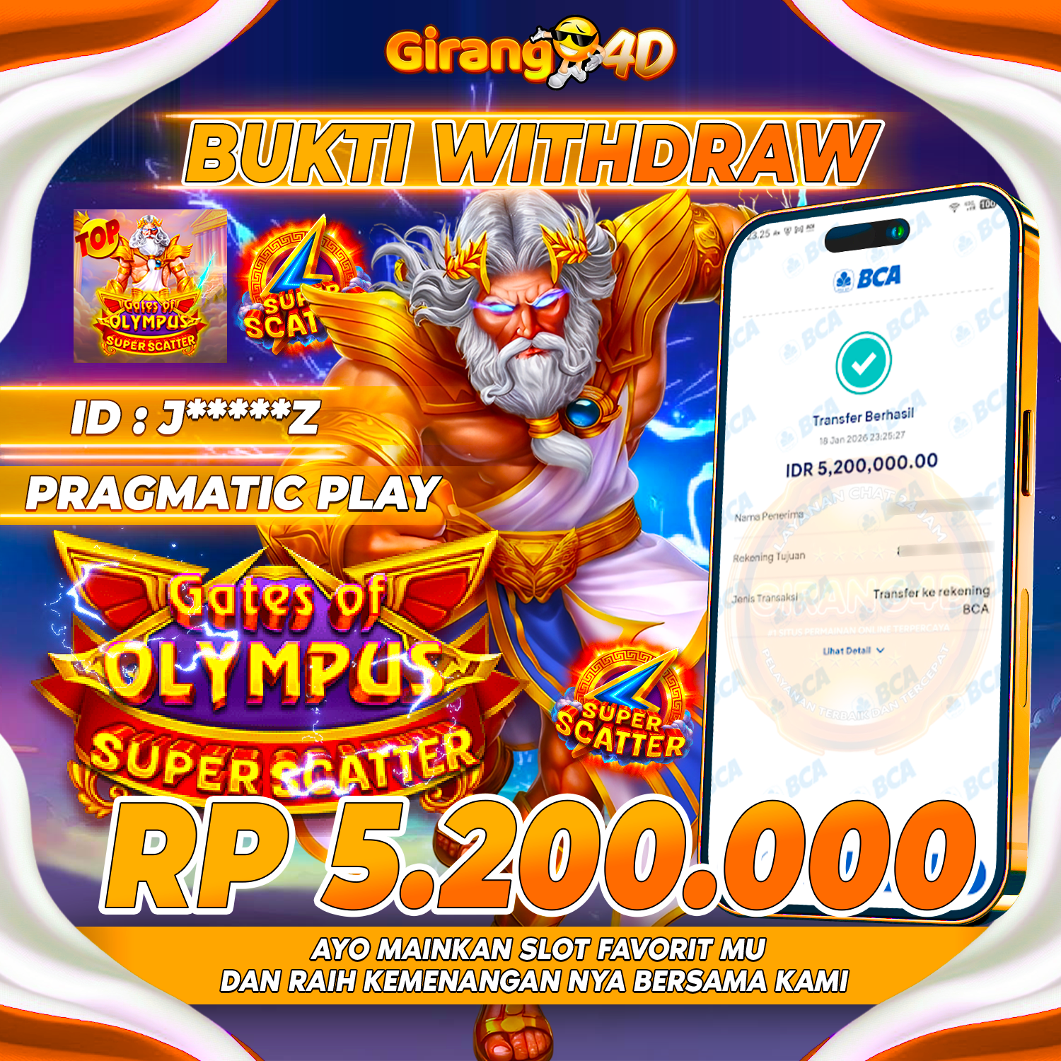 Selamat Kepada Id : J*****Z Atas Withdraw Rp. 5.200.000 Hari ini. Ditunggu Withdraw Selanjutnya dan ajak juga teman temannya bergabung di GIRANG4D