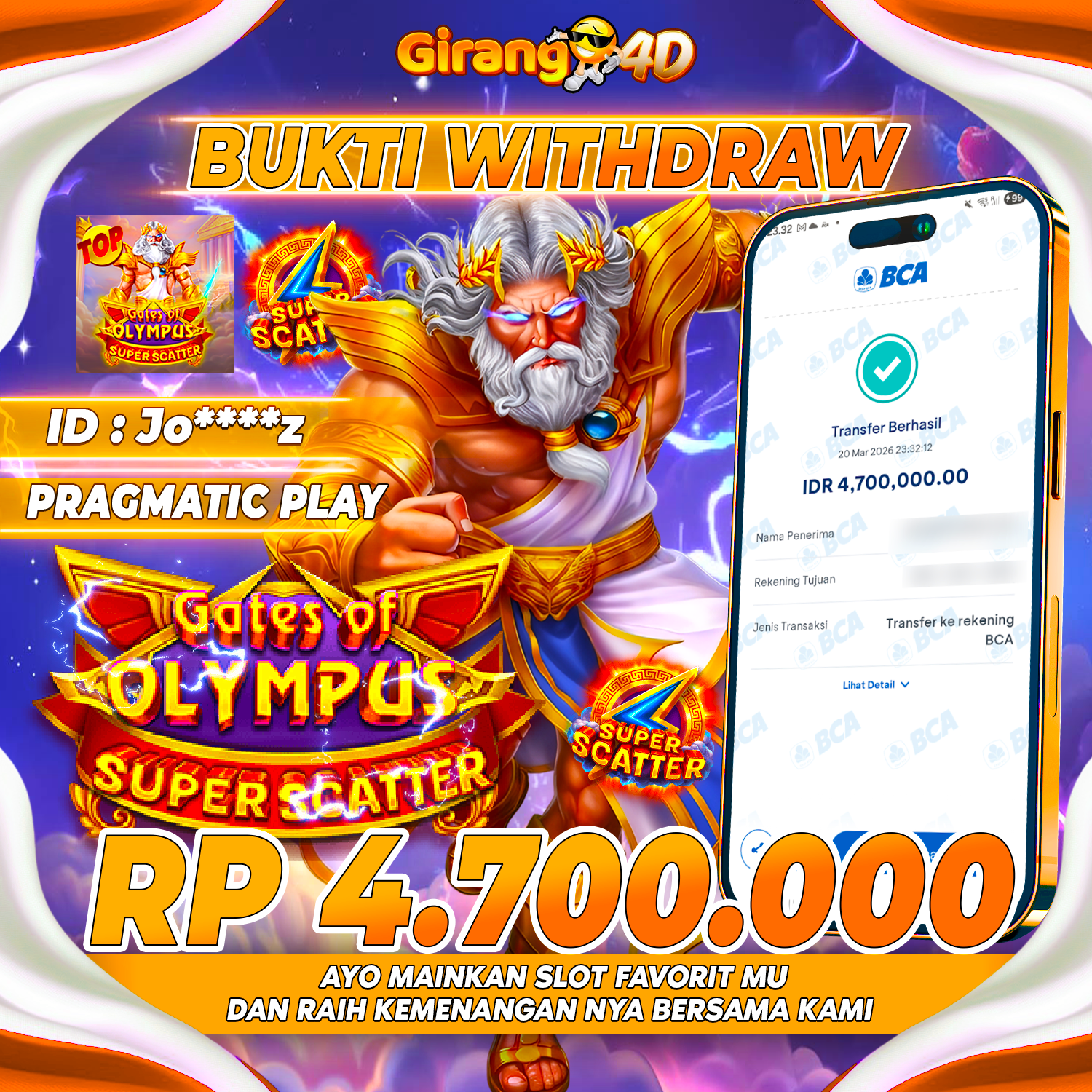 GIRANG4D Bukti Kemenangan SLOT GATES OF OLYMPUS SUPER SCATTER