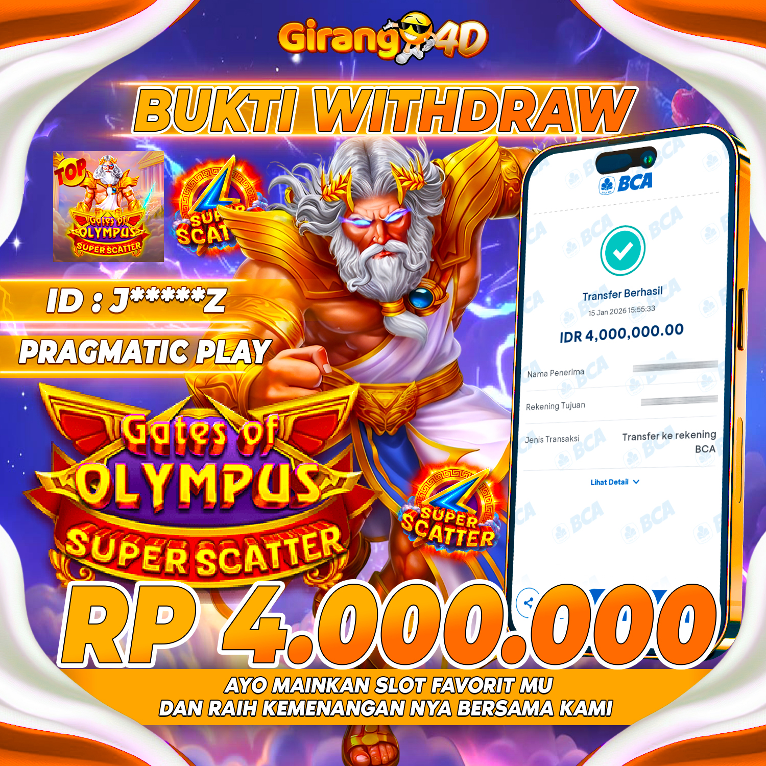 Selamat Kepada Id : J****Z Atas Withdraw Rp. 4.000.000 Hari ini. Ditunggu Withdraw Selanjutnya dan ajak juga teman temannya bergabung di GIRANG4D