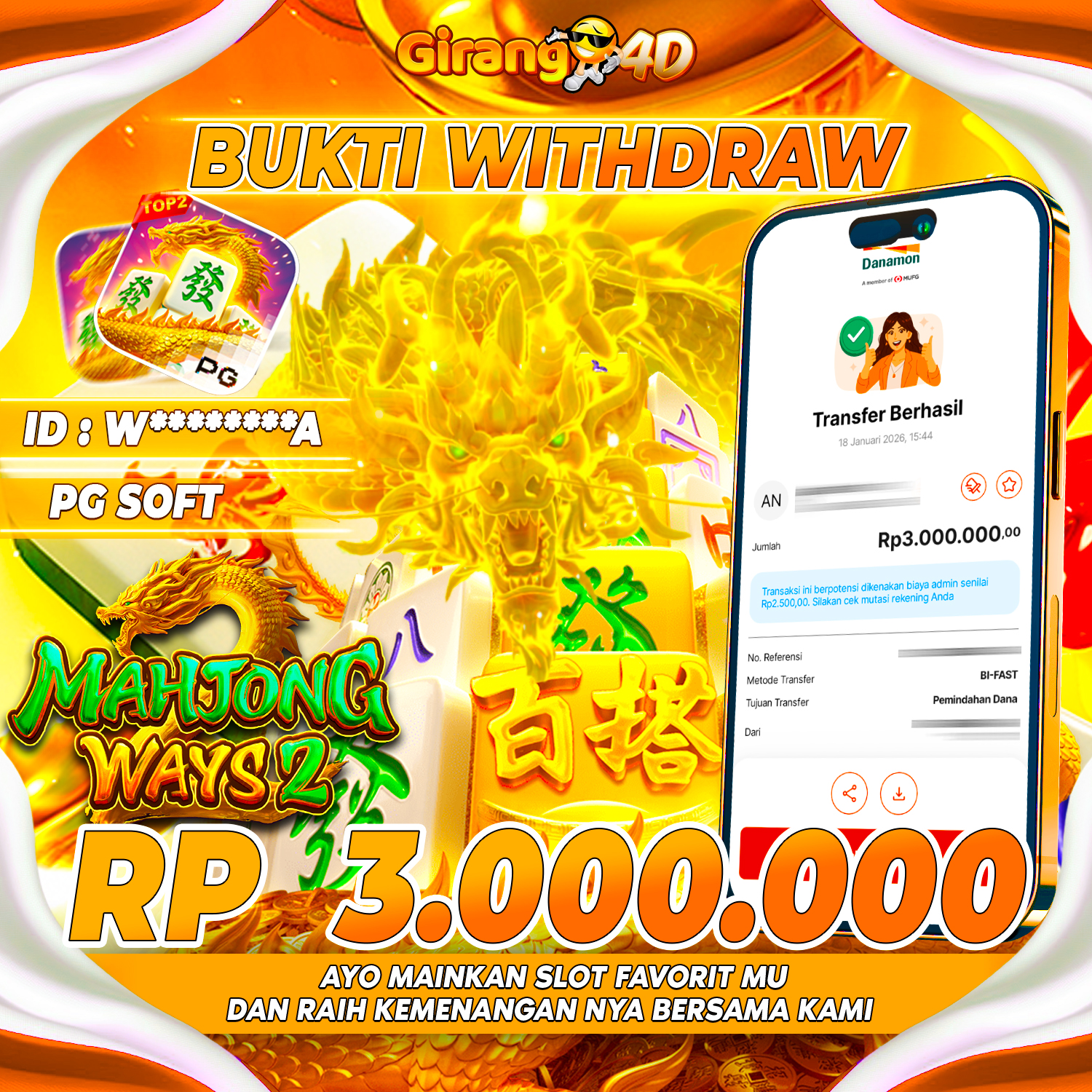 Selamat Kepada Id : W*******A Atas Withdraw Rp. 3.000.000 Hari ini. Ditunggu Withdraw Selanjutnya dan ajak juga teman temannya bergabung di GIRANG4D