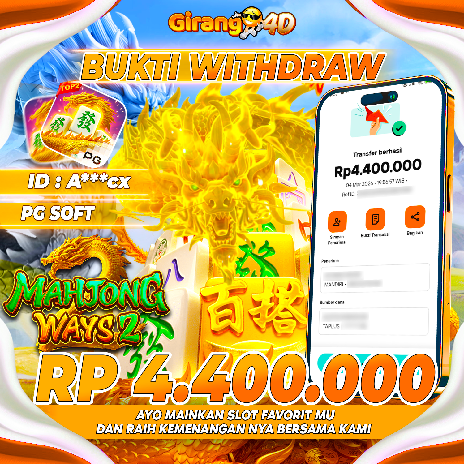 Selamat Kepada Id : A***CX Atas Withdraw Rp. 4.400.000 Hari ini. Ditunggu Withdraw Selanjutnya dan ajak juga teman temannya bergabung di GIRANG4D