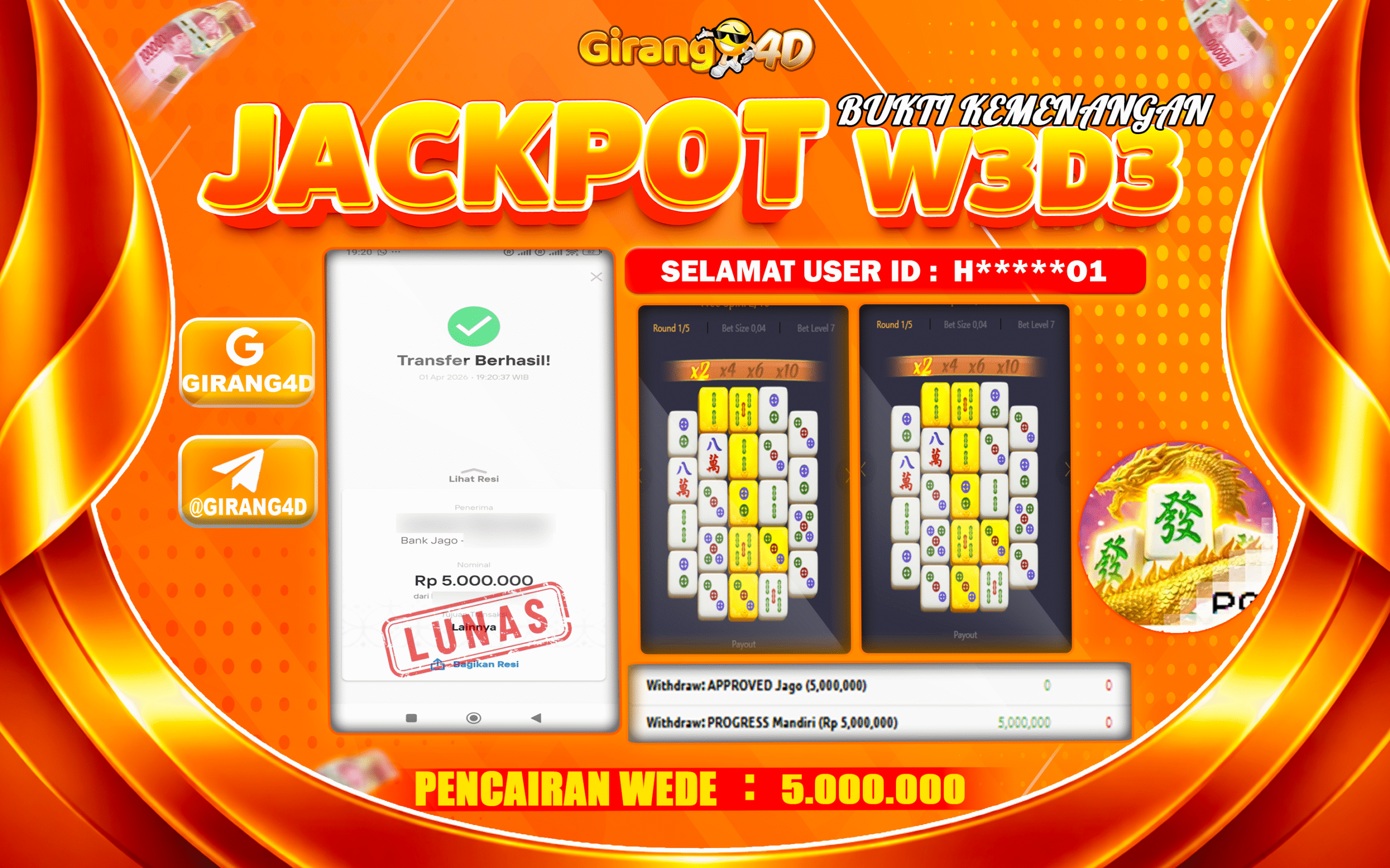 Selamat Kepada Id : H****01 Atas Withdraw Rp. 5.000.000 Hari ini. Ditunggu Withdraw Selanjutnya dan ajak juga teman temannya bergabung di GIRANG4D