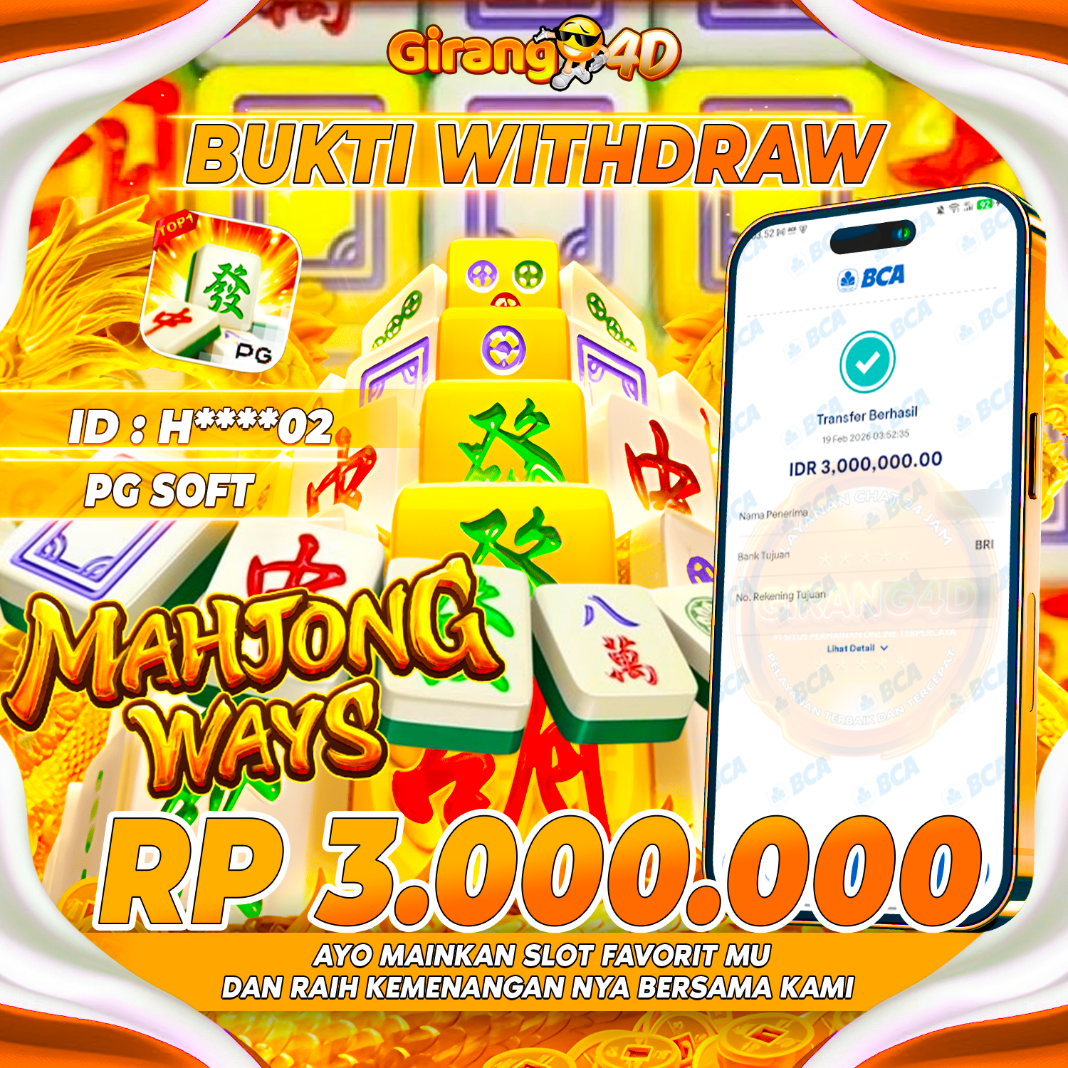 Selamat Kepada Id : H****02 Atas Withdraw Rp. 3.000.000 Hari ini. Ditunggu Withdraw Selanjutnya dan ajak juga teman temannya bergabung di GIRANG4D