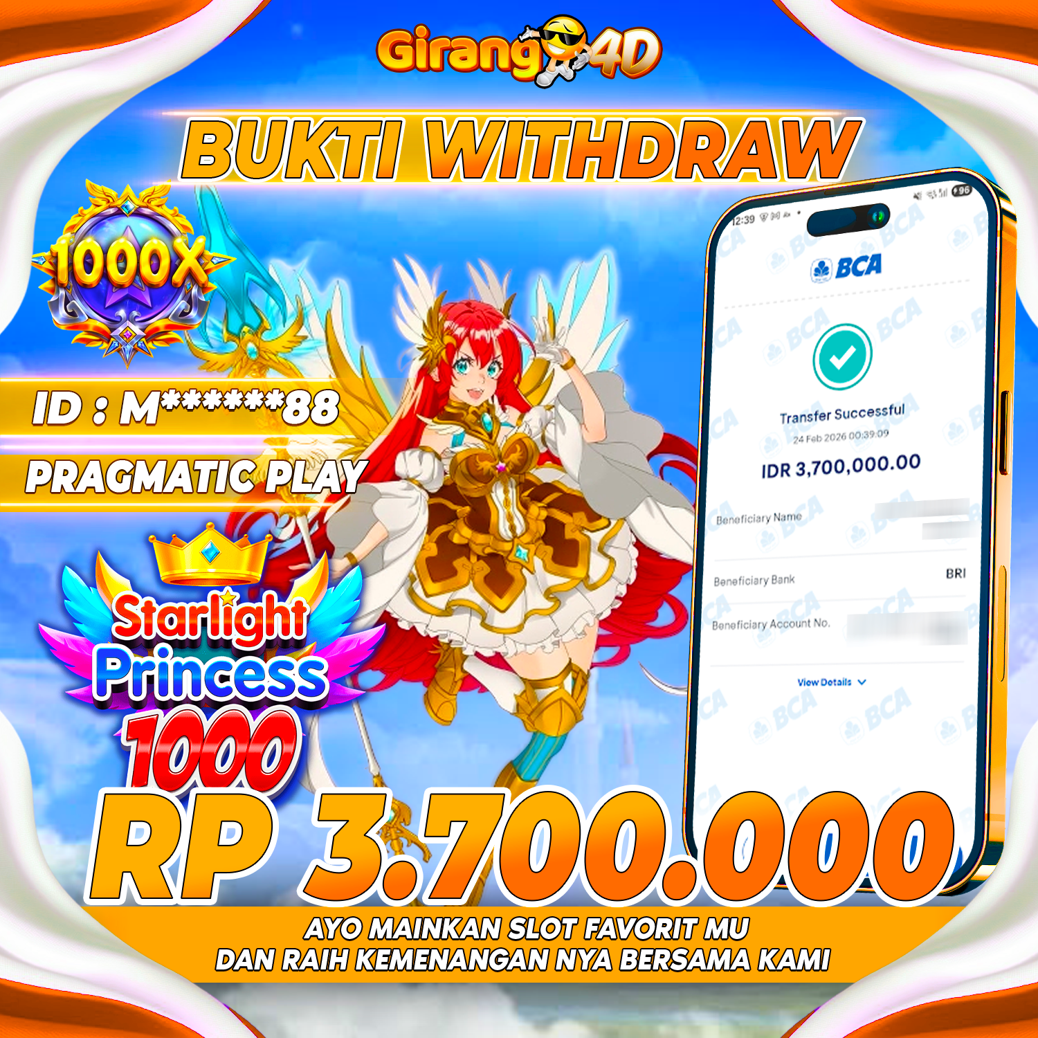 Selamat Kepada Id : M******88 Atas Withdraw Rp. 3.700.000 Hari ini. Ditunggu Withdraw Selanjutnya dan ajak juga teman temannya bergabung di GIRANG4D