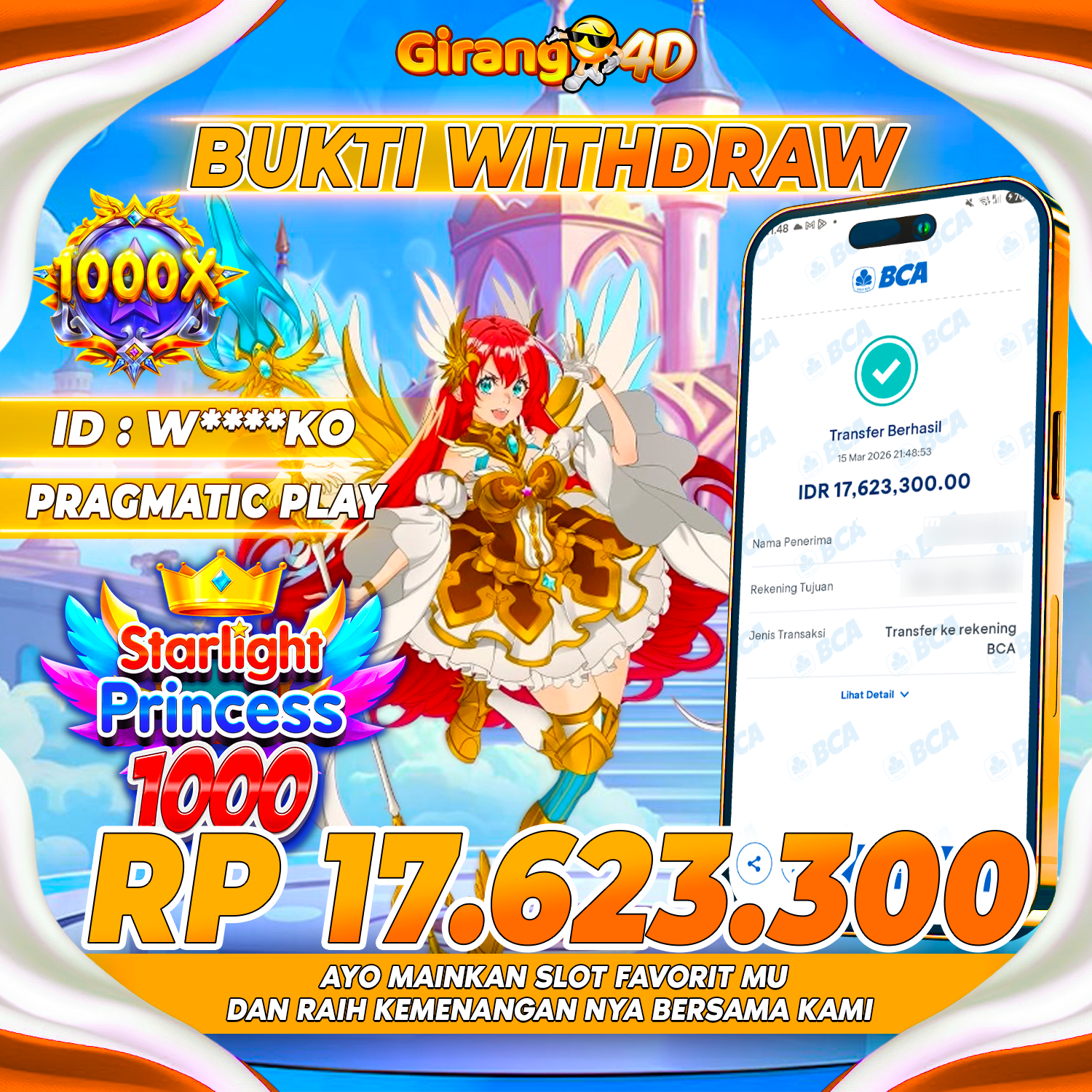 Selamat Kepada Id : W***KO Atas Withdraw Rp. 17.623.300 Hari ini. Ditunggu Withdraw Selanjutnya dan ajak juga teman temannya bergabung di GIRANG4D