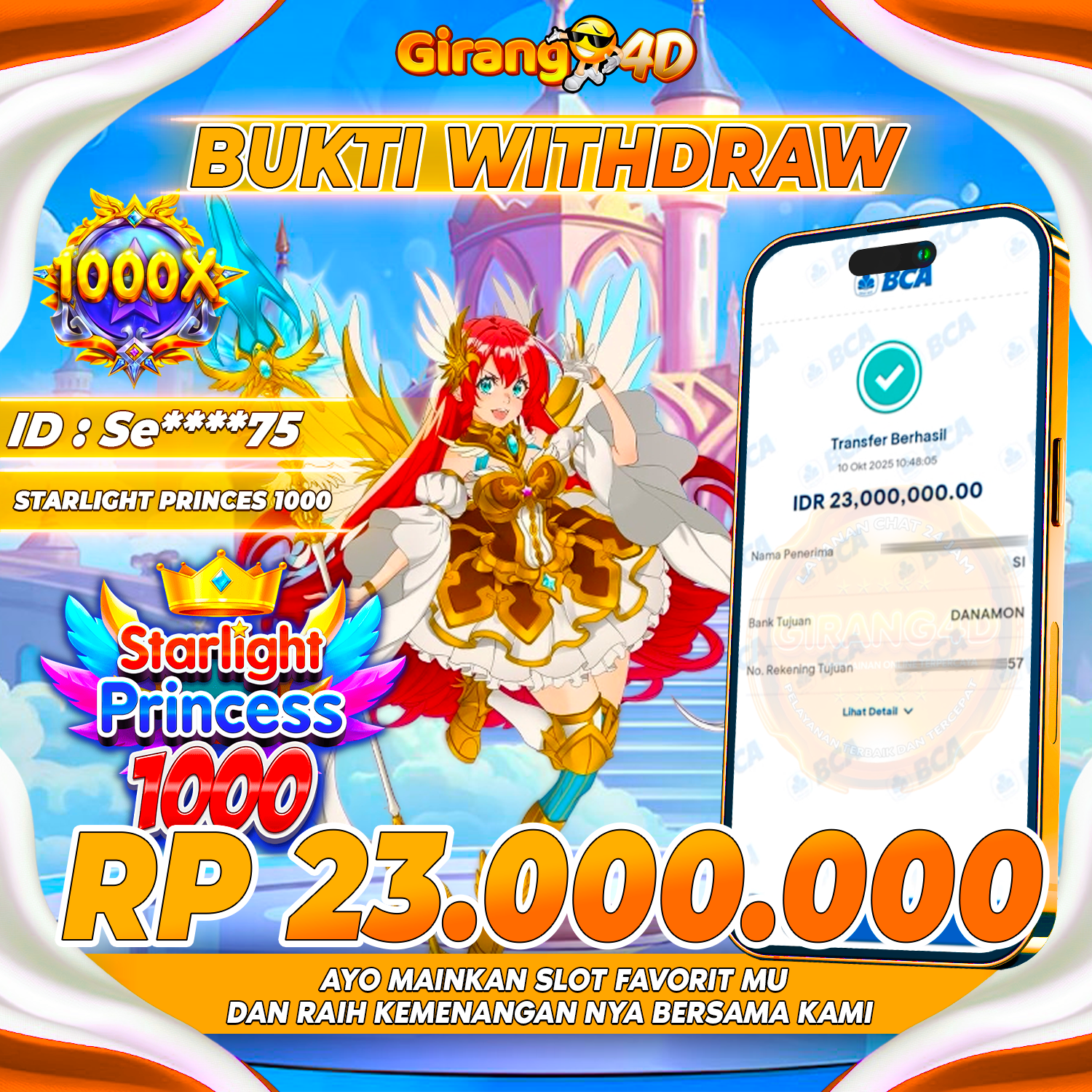 Selamat Kepada Id : Se****75 Atas Withdraw Rp. 23.000.000 Juta Hari ini. Ditunggu Withdraw Selanjutnya dan ajak juga teman temannya bergabung di GIRANG4D