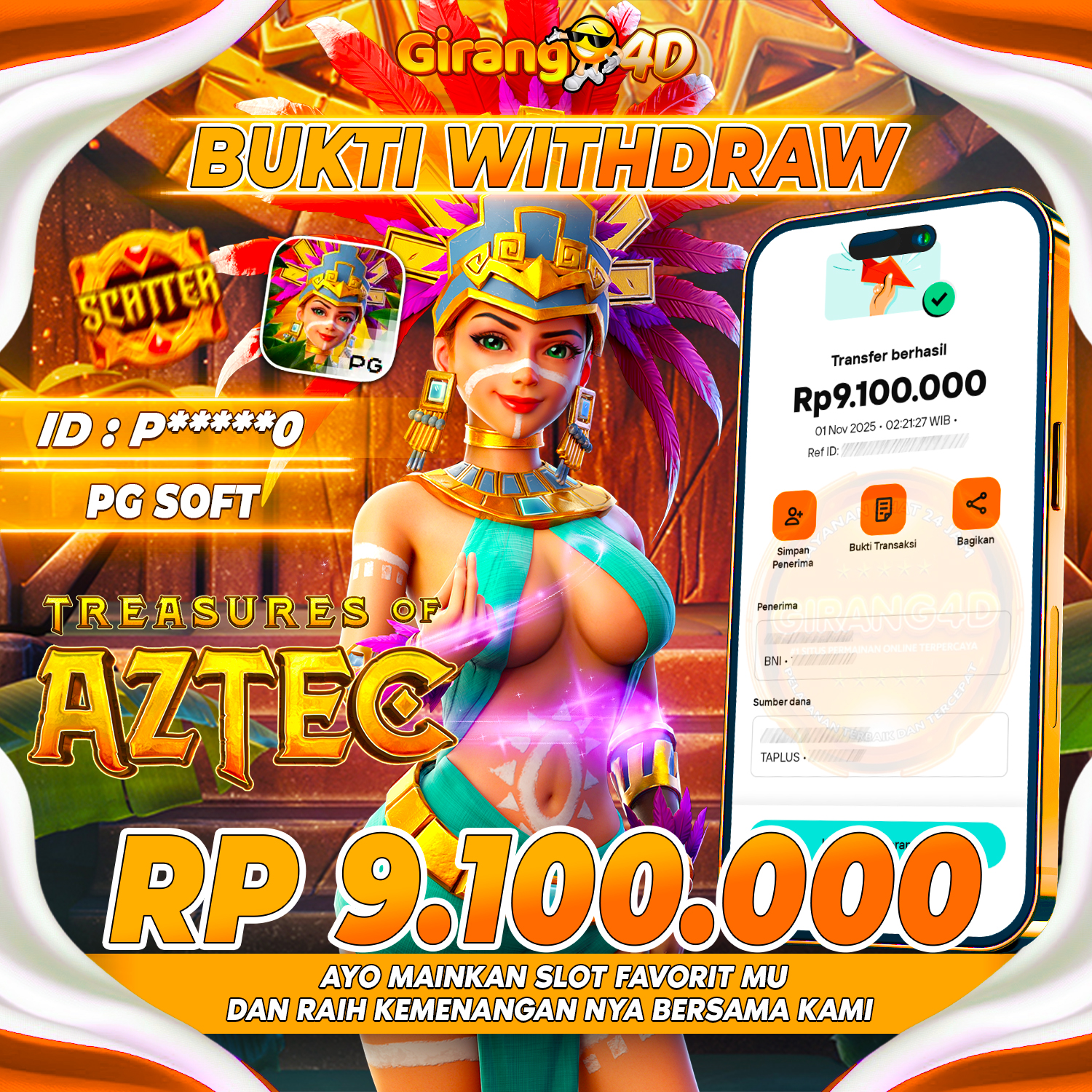 Selamat Kepada Id : P*****0 Atas Withdraw Rp. 9.100.000 Juta Hari ini. Ditunggu Withdraw Selanjutnya dan ajak juga teman temannya bergabung di GIRANG4D